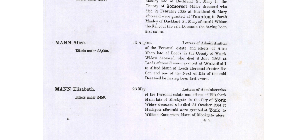 The only other facts are that she died on June 8, 1865, and left an estate worth less than £3000. It was administered by her son Alfred, who he carried on the business.