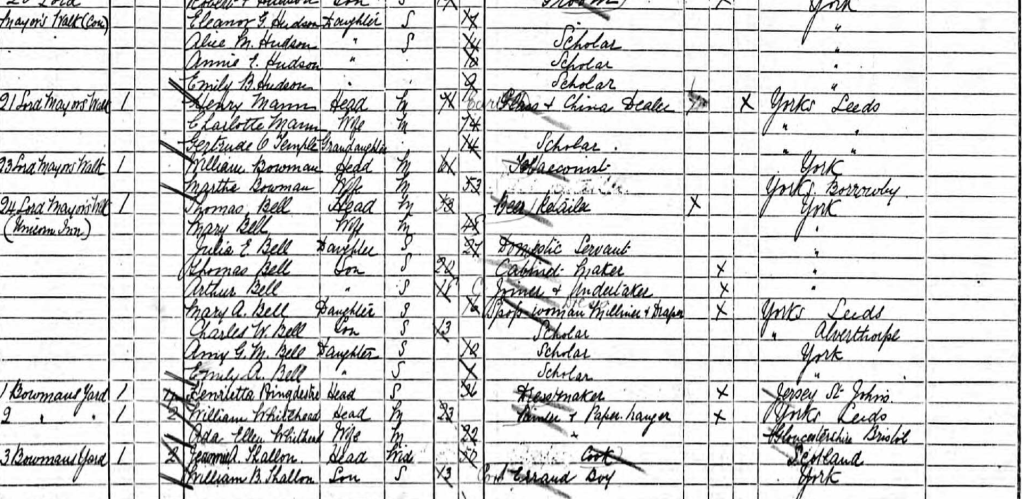 Who was Alice Bruneett Mann? One explanation is that in 1891, a child named Gertrude Temple was living in York with Henry Mann and his family. Gertrude was listed as Mann’s granddaughter. Henry Mann was one of the children of James and Alice Mann.