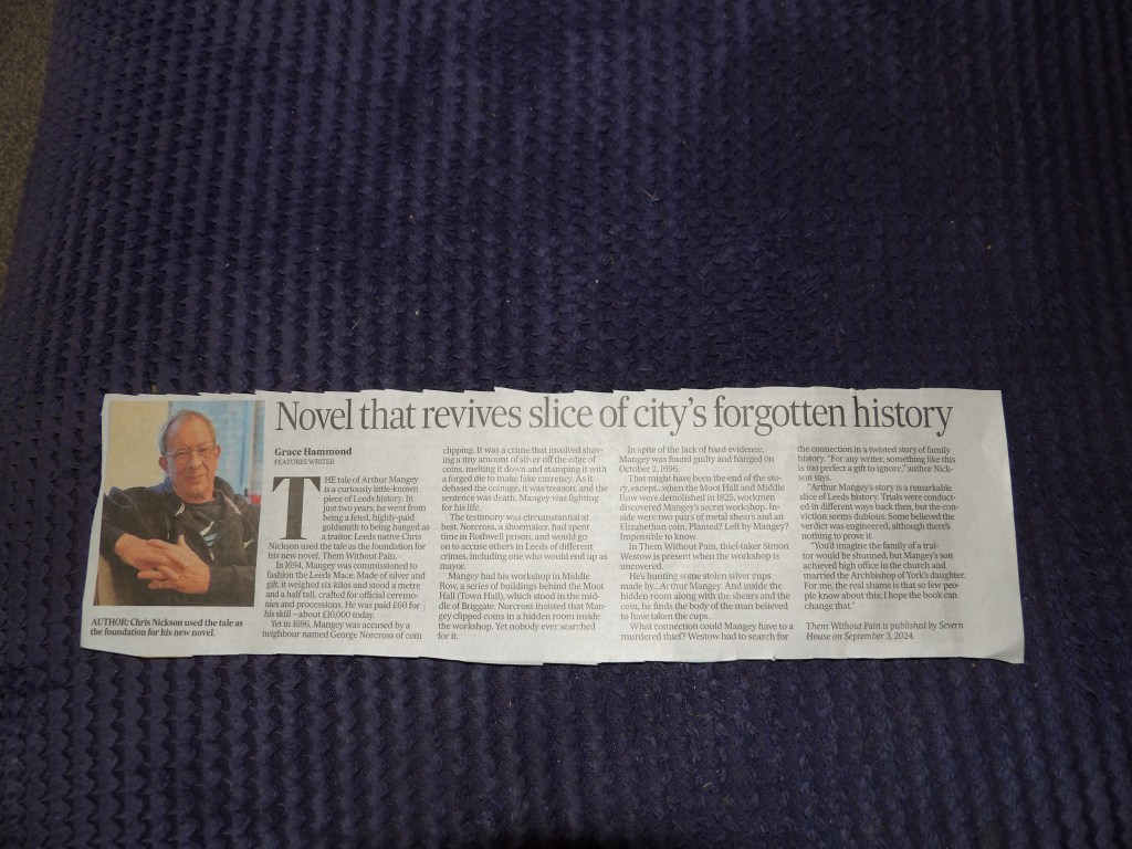 My latest is on sale with Amazon (I know, but…cost of living). At least, it is in the UK. The hardback is £13.61 and the ebook £12.93. That’s a good deal and I still get a full royalty. I’d love to sell more copies of it. I believe it’s a hell of a good story, with great characters, and a foundation in Leeds history (a Leeds goldsmith hanged for treason in 1696) that resonates through the years. You can find it right here – just click the link.