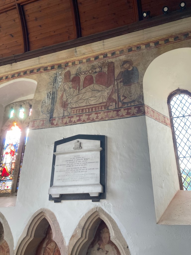 But the true glory is in the medieval wall paintings. They’d been covered over, probably to protect them during the Reformation or Civil War, to be uncovered in Victorian times and restored in the 1990s.
