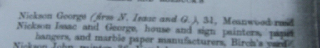 Home decoration and painting, and especially wallpaper, had become a thriving business as the 19th century progressed. Where it had once been an indulgence of the upper classes, it had moved beyond that. The middle classes wanted to make their mark on the houses they owned. Together, the brothers could take advantage of this (although their boast of ‘workmen sent all over the country’ was probably just as way to make themselves sound like a big firm). They were also listed as wallpaper marblers. This was a fad that had come back into vogue; knowing how to do it themselves would bring in more business.