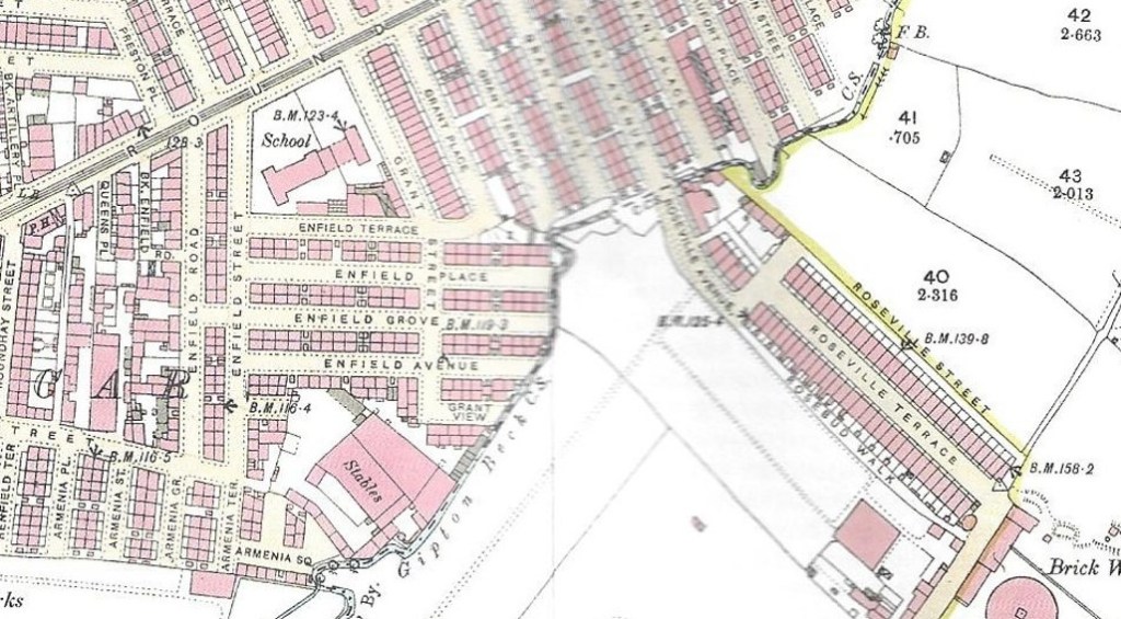 Armenia Grove ended in a big stone wall at the back of the dyeworks. A little further along, Gipton beck ran along past the school, down to the mill pond. Number six was the same as its neighbours, all blackened brick and rotting woodwork, the front door opening as the turned the handle. Henry and his father had the upstairs room at the front, the boy had told her. Locked, just he’d said. She knocked but there was no reply.